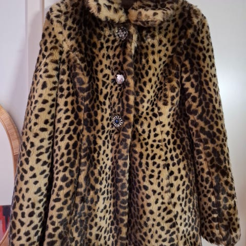 Musta paneelinen tekoturkistakki – Koko S (UK)