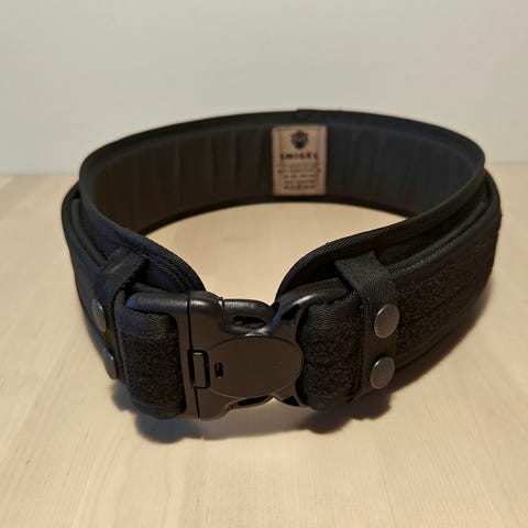 Musta hyväkuntoinen varustevyö, M-koko. Säädettävä.