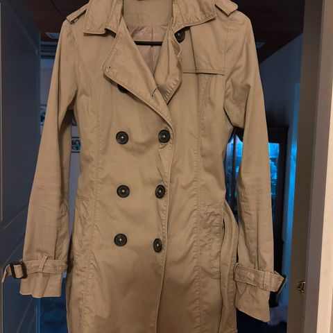 Naisten trenssityylinen Luhdan Storyn valmistama beige takki takki on vähän pidetty, siisti, koko 34-36. Koko takin, myös hihat, kattava siisti vuorikangas, päällyskangas polyester- puuvillaa.