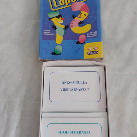 Myydään Höpön löpön korttileikit: mukaan tulee vanhempi ja uudempi versio, joissa eri kysymykset ja vastaukset. Yht. 2€.