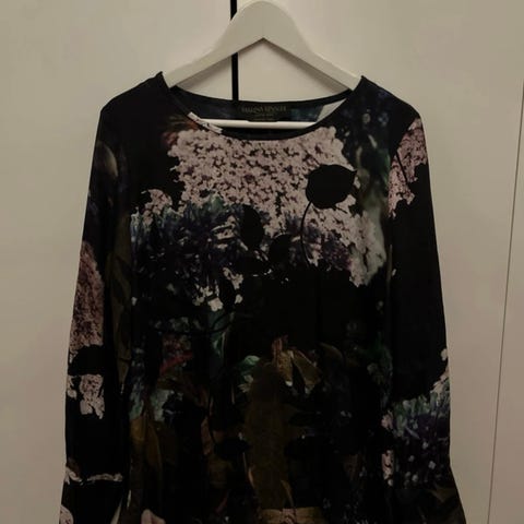 Myydään Marina Rinaldi t-paita. Musta pohja, jossa tanssivia neitoja. Edessä yksityiskohtana pieni rypytys. Ehjä, ei tahroja. Koko XL/42. 100% viskoosia.