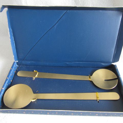 Myydään kauniit salaattiottimet. Materiaali terästä. Pituus 29 cm.