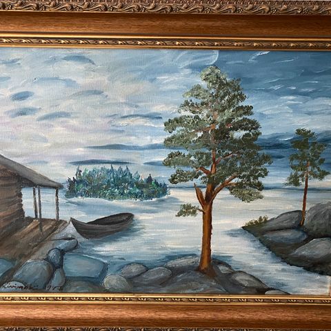 Tästä isokokoinen taideteos näyttävä taulu. Koko leveys 89 cm korkeus 64 cm Hyvänkuntoinen.