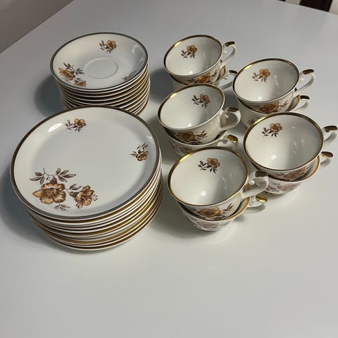 Myynnissä Myrna kahviastiasto. Astiat ovat käytettyjä, mutta hyväkuntoisia, siistejä ja ehjiä.