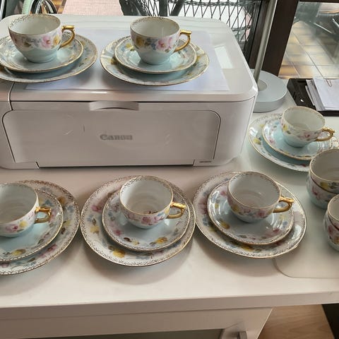 11 kahvikuppia aluslatasineen. Hinta 20 euroa/ tee tarjous