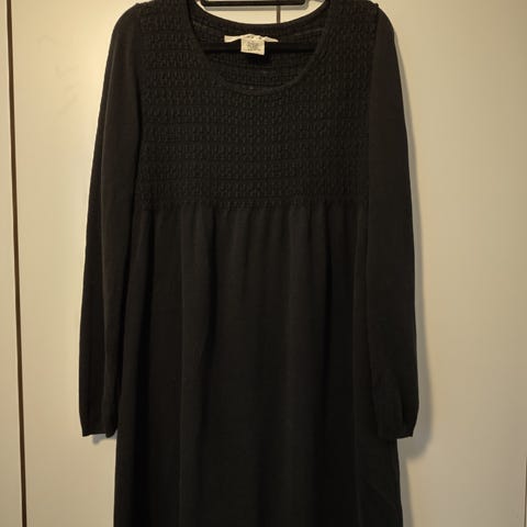 Tuunailtu mekko. Niskalapun muistona pikku reikä, korjattu useita pikku reikiä sivussa, nukkaa, ryppyä säilytyksestä, pesty. Kuivuu siistiksi ja sileäksi henkarissa, joten epäilisin että on jotain viskoosisekoite neulosta, sileää ja ohutta. Kunto huomioitu hinnassa, yritäppä itse roiskuttaa kuviot näin päheesti, ihan tuurilla onnistuu:))