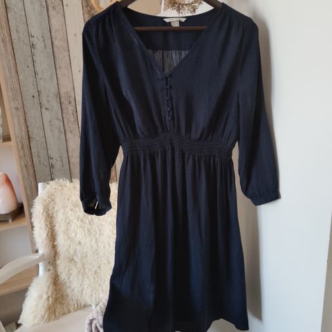 Tummansininen/valkoinen äitiysmekko.