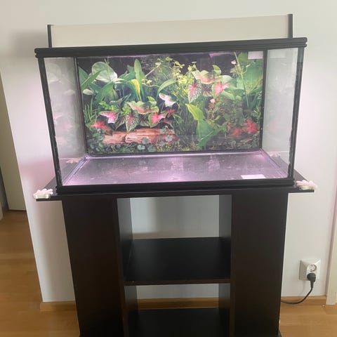 Täydellinen paketti akvaarioharrastuksen aloittamiseen. Nouto onnistuu sopimuksen mukaan. Ota yhteyttä nopeasti – tämä menee varmasti nopeasti!
