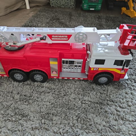 Jämäkät, tukevat, isot paloauto ja poliisiauto.