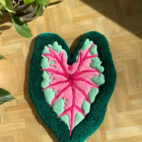 Tuftauspistoolilla valmistettu Junimo-matto. 👾 Lankana 100% akryyli, taustana liukueste-huopakangas. Pinta muotoiltu kolmiulotteiseksi trimmerillä.