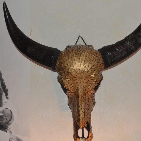 Suurikokoinen ja todella kauniisti koristekaiverrettu puhvelinkallo on näyttävä kohde. Ripustusnarulla kallo on helppo laittaa seinälle ilahduttamaan näkijäkuntaa.