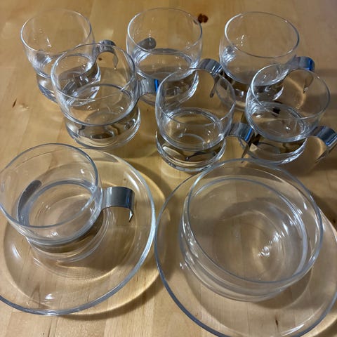 Design Vintage Iittala Paula 4 kpl lasit kahvoilla ja kauha ja + 4 pidikettä