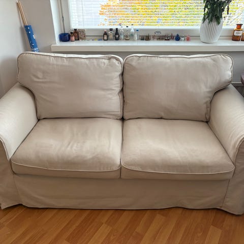 Myydään todella hyväkuntoinen sohva ja rahi. IKEAn Ektorp mallistoa värissä Hallarp Beige. Rahin pohja on tehty tukevammaksi puupalalla. Rahissa on runsaasti säilytystilaa.