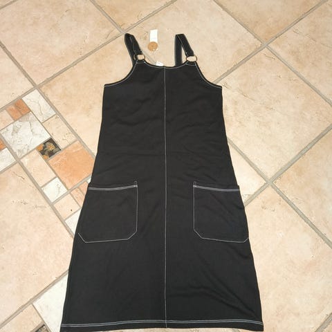 Linjakas pliseerattu helma, aukeavat napit edessä. Kangas napakkaa, ohutta ja hyvin laskeutuvaa, ei veny yhtään. Väri tummanharmaa/grafiitinharmaa. Ostettu Ranskasta ysärillä. Liivimekossa ei mitään vikaa eikä hajuja, roikkunut vaatehuoneessa. Nyt jollekin käyttöön. Lapussa koolle 14v 164cm.