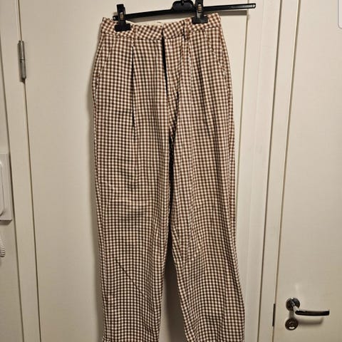 Myynnissä kahdet housut kokoa 36. Khakit paperipussihousut, joissa hakakiinnitys edessä sekä nauhat ja mustat reisitaskuhousut, joissa nepparikiinnitys ja leveähköt lahkeet. Molempien merkki H&M. Molemmat ehjät, siistit ja hyväkuntoiset.