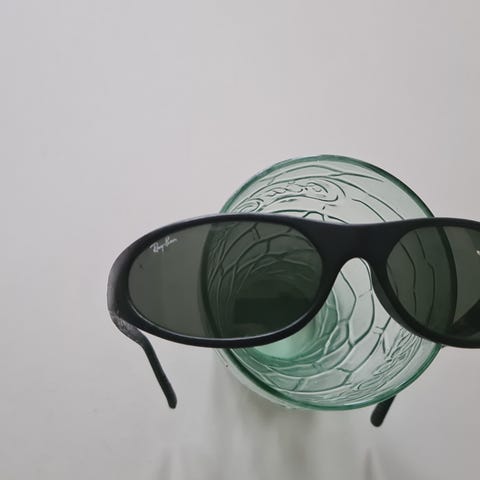 Käytetyt rayban aurinkolasit. Kuvista näkyy tunnisteet ja kulumat, joita on sankojen sisäpinnalla ja nenän kohdan sisäpinnalla. Siistit kuitenki päällisin puolin.