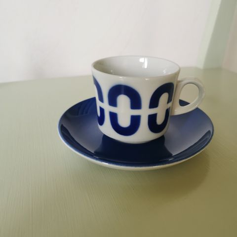 Arabia puhalluskoristekuppi ja tassi ja lautanen