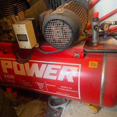 2 sylinterinen kompressori,tuotto varmasti riittävä.Todella vähän käytetty peli.