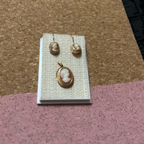 Kultaiset "Camee" korvakorut ja sormus