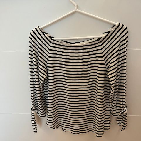 Kivan ohut harmaavalkoraidallinen paita. Hihoissa napit ylöskäärimistä varten.