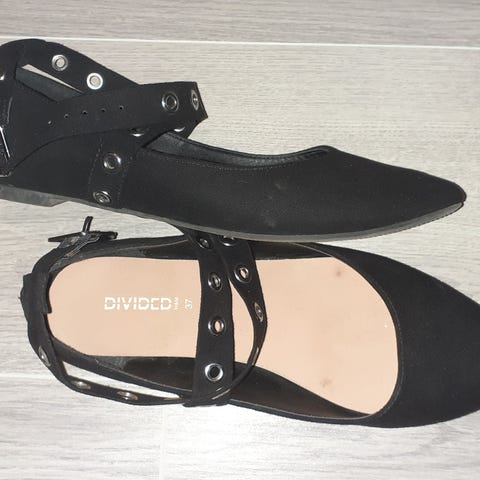 H&M Divided mustat pitsipäällysteiset ballerinat. Kokomerkintä 37. Oma jalka 36,5 ja nämä ovat sopivat. Käyttämättömät.