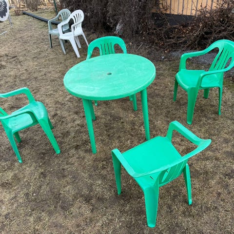 Myydään kuvan pirttipöytä, ollut jo vuoden päivät ulkosalla sään armoilla.