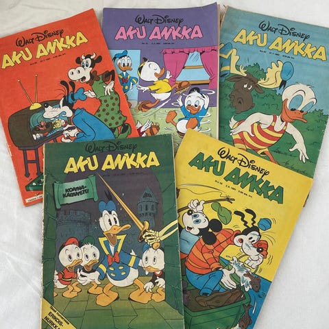 Myynnissä hieno kokoelma vanhoja Aku Ankka -lehtiä vuosilta 1978, 1979, 1980 (osittain) ja 1981. Lehdet ovat hyvässä kunnossa ja säilötty siististi kovakantisessa kansiossa, joka sisältyy kauppaan.