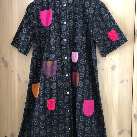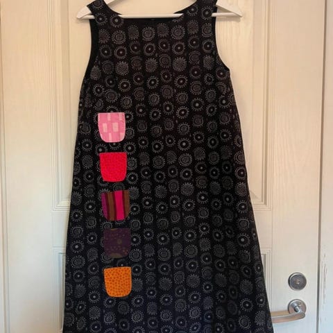 Myyn vanhempaa mallia olevan ruskean Iloinentakki-mekon. Kokomerkintänä 32, mutta olen käyttänyt sitä m-kokoisena.Kunnossa ei moittimista. Kai-kai 50cm, pituus 87cm. (Lyhennytin tätä hieman ompelijalla aikoinaan, sillä käytin farkkujen kanssa).