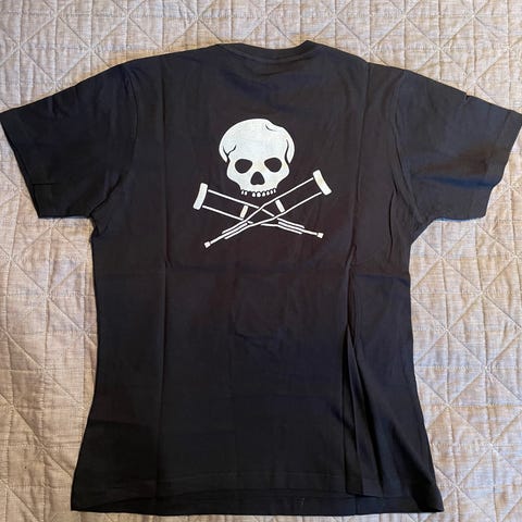 Musta T-paita missä Batman teemainen teksti/kuvitus.