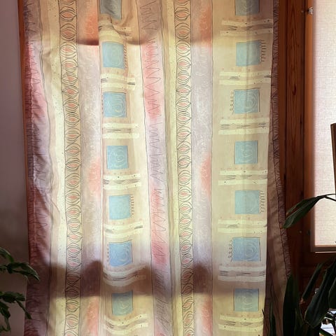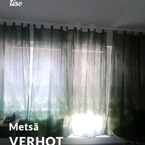 Kaksi valmisverhoa hauskalla maatilakuosilla. Myydään yhdessä. Vähäiselle käytölle jääneet.