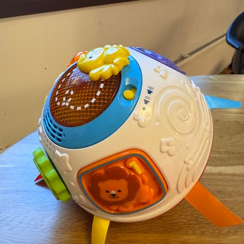 Yhdellä lapsella käytössä ollut, kaapin perukoille jäänyt puuhapallo. Testattu, että toimii hyvin.