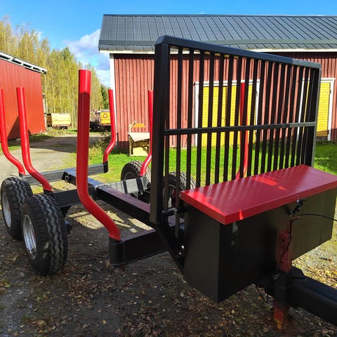 Kierukkakärry vanhalla metsäkärryn alustalla, lava tehdastekoinen.