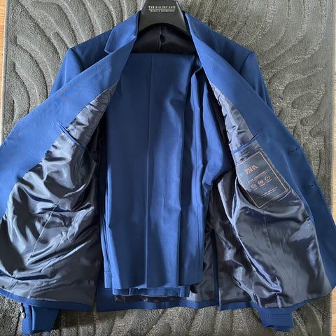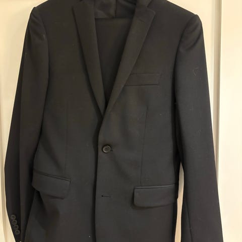 Myydään zara musta puku. Takki 44 ja housut 38. Ollut 15-16 v pojalla.