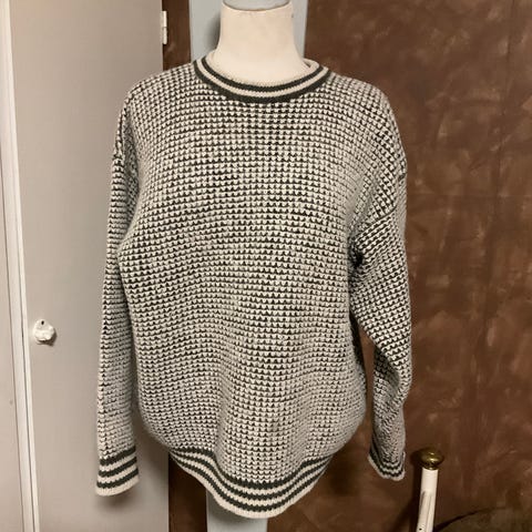 Huippulaatuinen Suomessa valmistettu 80/90-luvun neule. Kaunis sininen väri vihreillä yksityiskohdilla. Koko XL, mutta enempi M-L