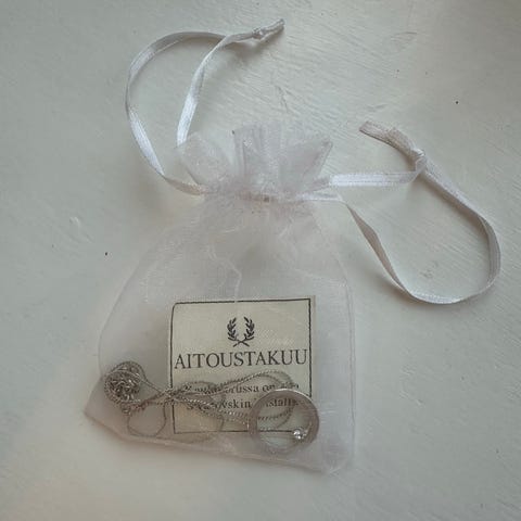 Korupaljouden takia myyntiin upea käyttämätön silikoninen kaulakoru lahjapussissa. Irrotettava Swarovskin kristalli (näkyy yhdessä kuvassa). Sopii myös allergisille.