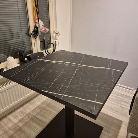 Kuvan mukainen marmori kuvioinen ja kulta jalkainwn Ruokailuryhmä hyvällä hinnalla :)