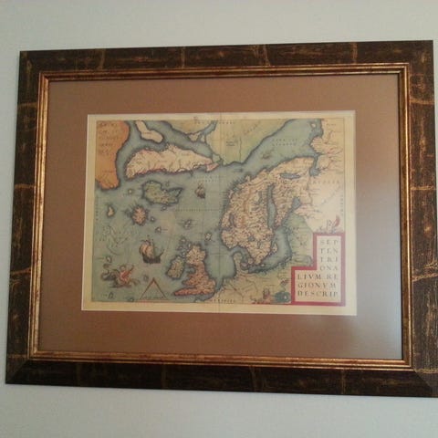 Taulu ohutta levymateriaalia. Vaalean harmahtava pohjaväri, musta kartta. Lev 95cm, kork 67cm, paksuus 6mm.