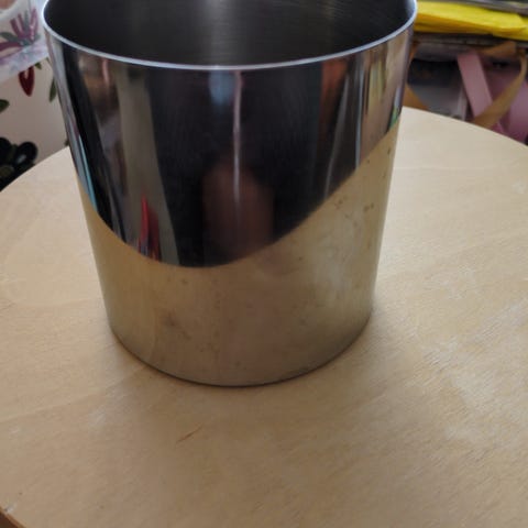 Hauska metalliruukku simpukkakoristein. Halkaisija 16 cm ja korkeus 10 cm.