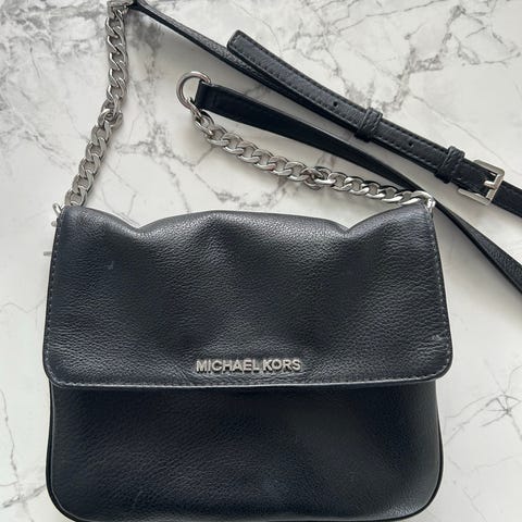 Michael Kors Musta laukku ruskeat olkaimet.