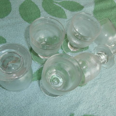Erittäin viehkeän sherrylasit. Kirkasta ohutta lasia. Lasiosassa hauska pallokuvio. Näkyy hyvin ylhäältä.