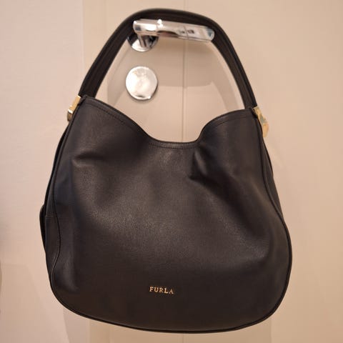Myynnissä upea, laadukas Furla-nahkalaukku. Klassinen ja ajaton malli, joka sopii niin arkeen kuin töihin tai juhlaan. Musta, jykevää pintanahkaa, kullanväriset yksityiskohdat ja siisti sisävuori. Useita lokeroita, vetoketjutasku ja irrotettava olkahihna. Säilytetty pölypussissa ja sisällä täyte (kuvissa näkyy).