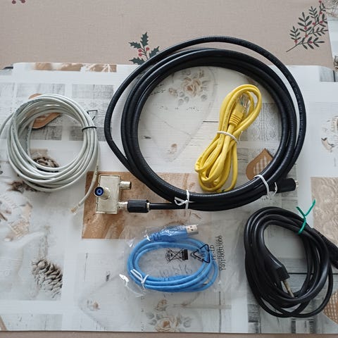 Kolme puhelin(jatko)johtoa ja irtopää.