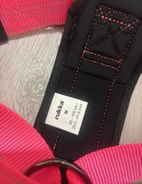Edessä ja selässä D-rinkula johon saa hihnan. Lukitus ominaisuus klipsussa.