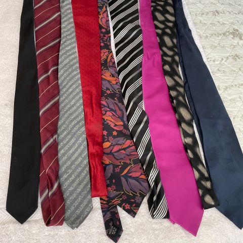 Erilaisia kravatteja 17kpl. Hinta 5€/kpl tai kaikki kerralla telineen kanssa 50€.