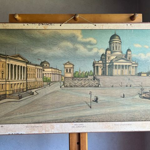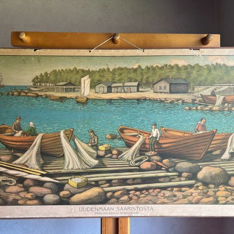 Hieno koulukäytössä ollut vanha opetustaulu Ilkan leiristä Nokialla