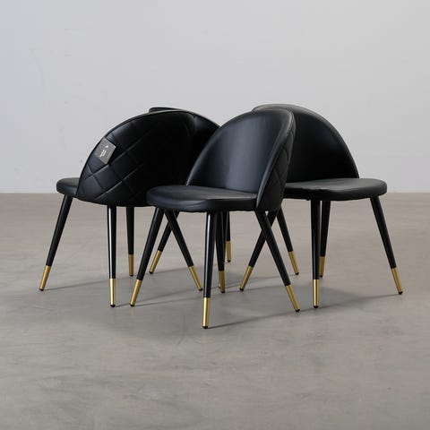 Tyylikäs, ajaton ja mukava ruokapöydän tuoli korkealla selkänojalla ja mustalla tekonahkaverhoilulla.