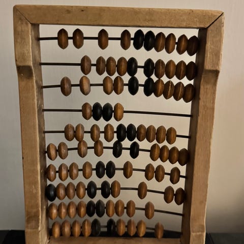 Nyt kännykät pois ja laskemaan. Myyn vintage puisen helmitaulun. Leveys 26,5cm ja korkeus 45cm.