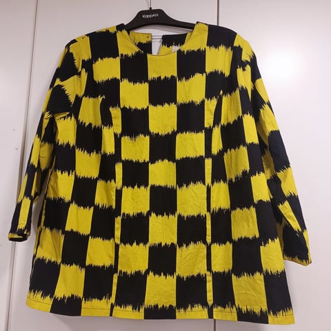 Kaksi kesäpaitaa koot M. Yksi ruudullinen Luhta puuvilla ( kai-kai 53 cm ja pituus 63 cm ) ja toinen viskoosi tehty Italiassa, koristeltu pitseillä (Kai kai 60 cm pituus 65 cm)