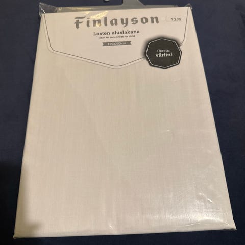 Valkoisia (ja yksi raitainen) aluslakanoita vauvan/taaperon sänkyyn. Kuusi muotoonommeltua ja viisi tavallista. Lisäksi yksi muovitettu pissasuoja. Kaikki kerralla.