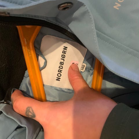 Lahjaksi ostettu takki, jonka koko arvioitu väärin ostettaessa, joten jäänyt varastoon.